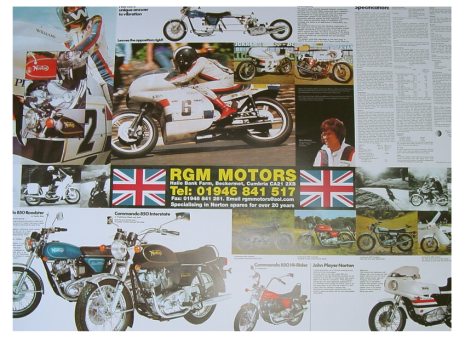 COMMANDO COMMERATIVE COLOUR POSTER, LIMITED EDITION. DERIVED FROM AN ORIGINAL FACTORY SALES BROCHURE PRINTED ON THICK WHITE ART PAPER, FEATURING JOHN PLAYER AND PRODUCTION RACERS, INTERSTATE, INTERPOL, HIGH RIDER AND JPN. |
