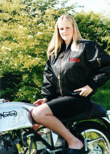 FLYING JACKET, BLACK SATIN, NYLON LINED, POLYESTER PADDING - WITH RED EMBROIDERED NORTON LOGO. STATE M. L, XL OR XXL |