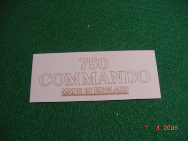 750 COMMANDO MADE IN ENGLAND- GOLD TRANSFER |