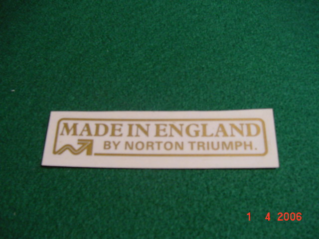 MADE IN ENGLAND BY NORTON TRIUMPH - GOLD STICKER |