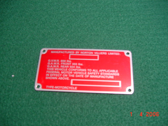 FRAME NAME PLATE ON HEADSTOCK RED LATE 750 EARLY 850 |